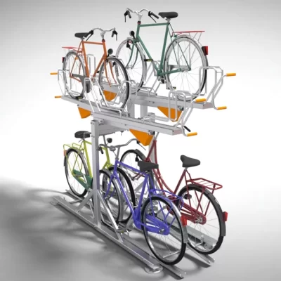 This solution or double tier bike racks we desing under our customers demand. In times, where we need do save our storage space, double level parking is great option. Space-saving cycle parking sysstem could be installed underground on bike parking oraz under bike shelter. Double stacking bike racks we manufacture in two models, it could be adapt under needs and be paint on every color from RAL. If you have a question about our double stacking bike racks, please contact our sales team, we will reply you soon.